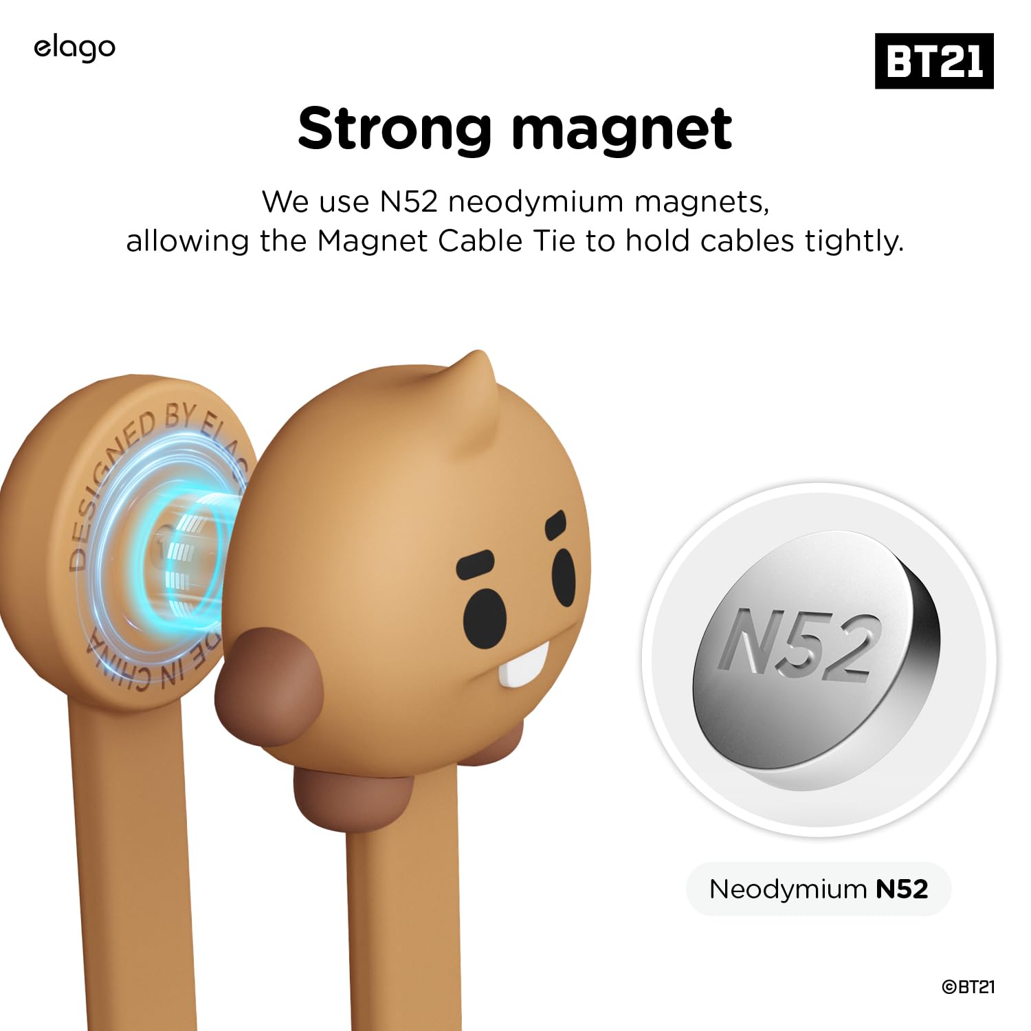 elago | BT21 Magnetic Cable Ties, Premium Silicone Cord Organizer, Reusable Magnetic Cable Organizer [Official Merchandise] (SHOOKY)