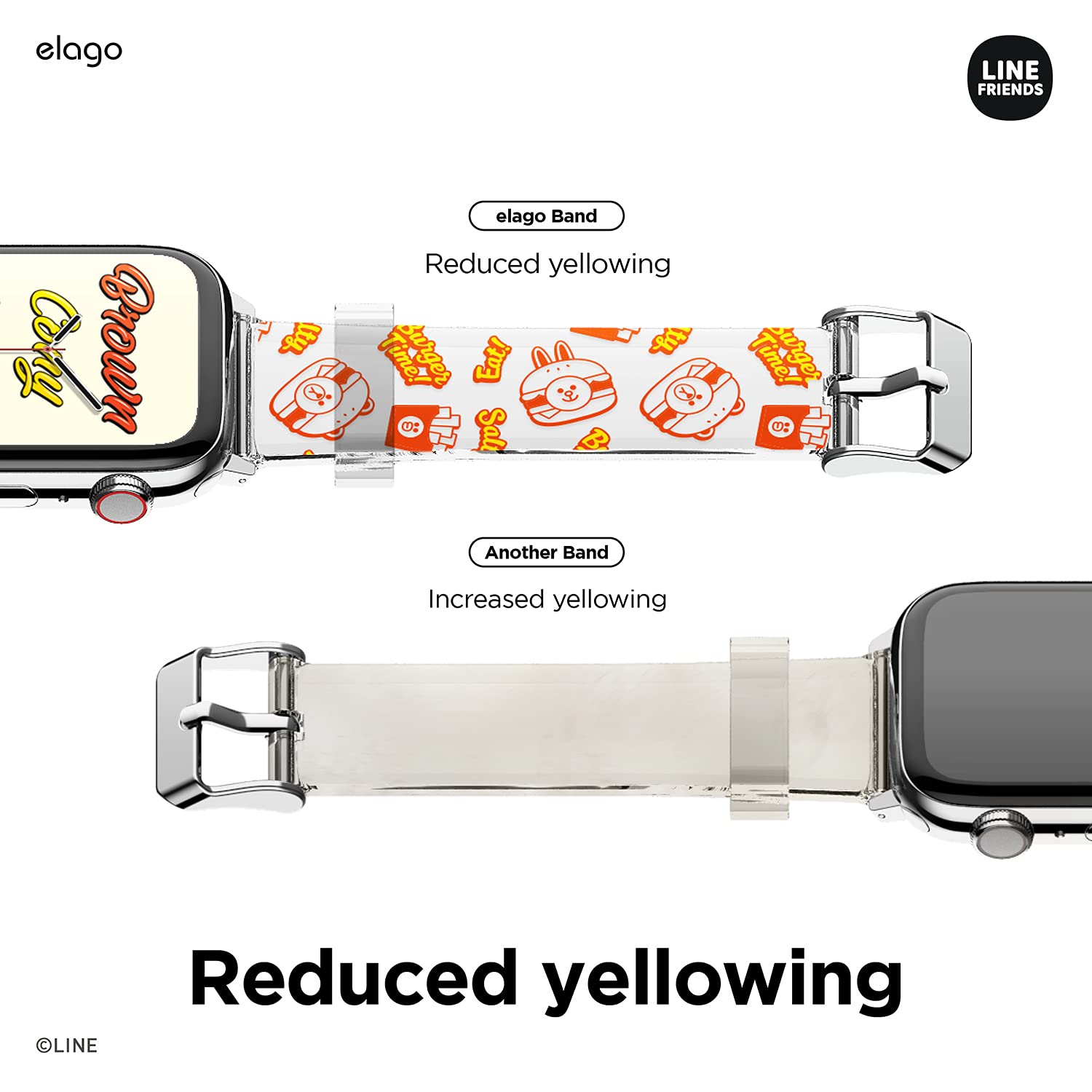 elago l LINE FRIENDS Burger Time Band Compatible with Apple Watch Band 38mm 40mm 41mm 42mm 44mm 45mm 49mm compatible with iWatch Series Ultra2/Ultra/SE/9/8/7/6/SE/5/4/3/2/1, Soft Protective Strap [Official Merchandise] (Junior Set)