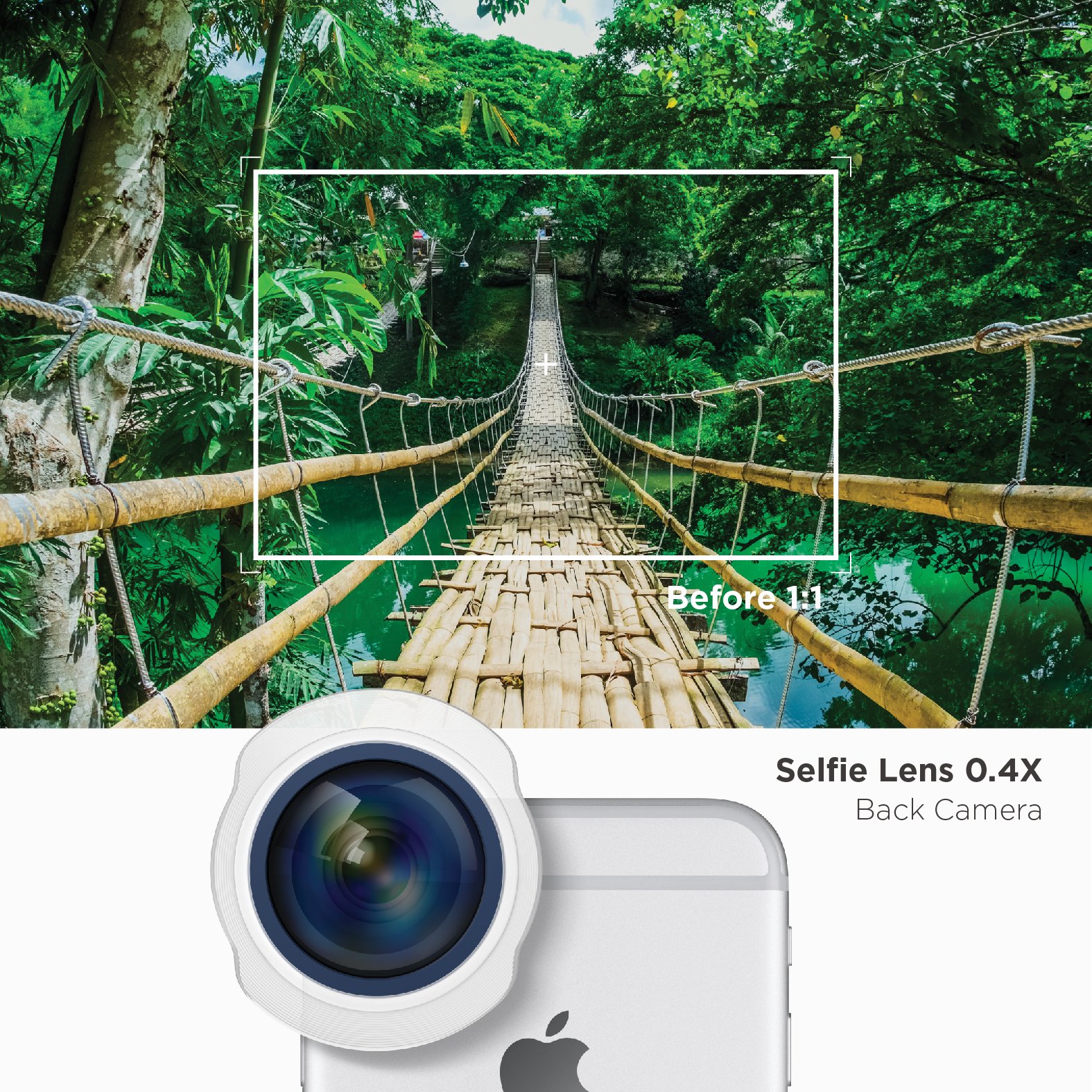 - 0.4X Wide Angle Lens: True 0.4X wide angle allows you to stretch your picture capacity and fit more in.